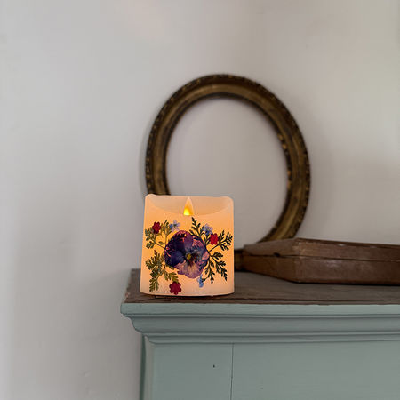 Quelques précautions à prendre dans l'utilisation : Cette bougie étant en cire et les fleurs étant séchées, nous vous recommandons vivement de ne pas laisser la bougie en plein soleil sous peine de voir la cire fondre et les fleurs pâlir. De plus, nous vous invitons à ne pas toucher la flamme quand elle est en mouvement et à retirer les piles en cas de non-utilisation (comme vous devez le faire avec tous vos appareils à piles).