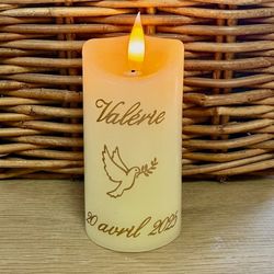 Un cadeau unique : Pour un baptême, une communion, une profession de foi ou une confirmation, offrez à un enfant ou un adulte une bougie à son nom. Cette bougie Led à la flamme qui vacille est en cire ivoire. Posée sur une table de chevet, une étagère ou un bureau, elle diffuse une lumière chaleureuse, en toute sérénité.