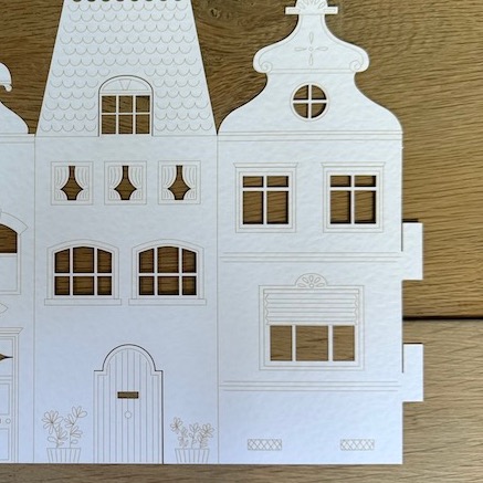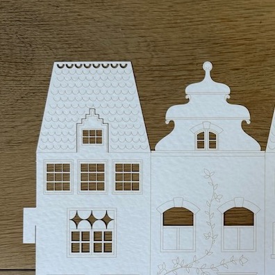 Artisanal: Cette maison d'inspiration hollandaise est fabriquée dans un papier de haute qualité puis découpée au laser pour faire apparaître des détails élégants et très précis comme les tuiles du toit, les rideaux des fenêtres, les plantes grimpantes. Chaque façade étant unique, vous avez 4 décors possibles qui vous permettent donc de créer des villages différents au gré de vos idées. Complétez enfin votre village avec des éléments en papier comme des sapins, des arbres, des animaux ...