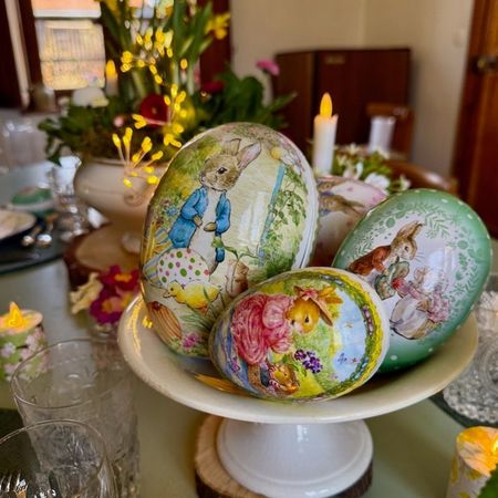 Ce bel œuf de Pâques est fabriqué en carton, artisanalement. Il est composé de deux coques qui s'emboîtent facilement. D'une hauteur de 18 cm, il peut contenir plus d'une trentaine d'œufs en chocolat.
