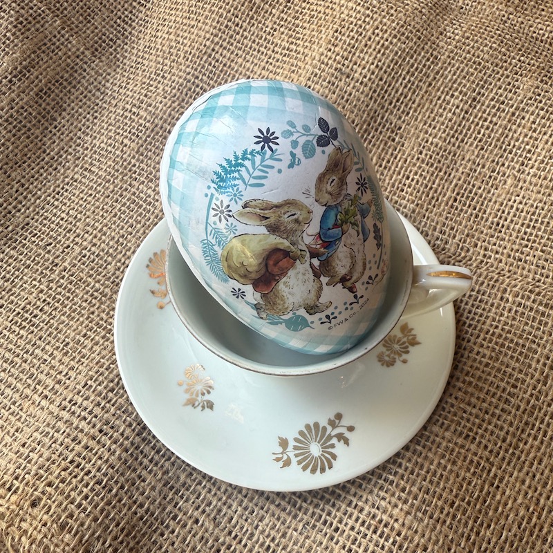 Ce bel œuf de Pâques est fabriqué en carton, artisanalement. Il est composé de deux coques qui s'emboîtent facilement. D'une hauteur de 9 cm, il peut contenir une dizaine d'œufs en chocolat.