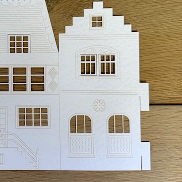 Artisanal : Cette maison d'inspiration hollandaise est fabriquée dans un papier de haute qualité puis découpée au laser pour faire apparaître des détails élégants et très précis comme les le détail des façades, l'horloge, la rampe de l'escalier. Chaque façade étant unique, vous avez 4 décors possibles qui vous permettent donc de créer des villages différents au gré de vos idées. Complétez enfin votre village avec des éléments en papier comme des sapins, des arbres, des animaux ...